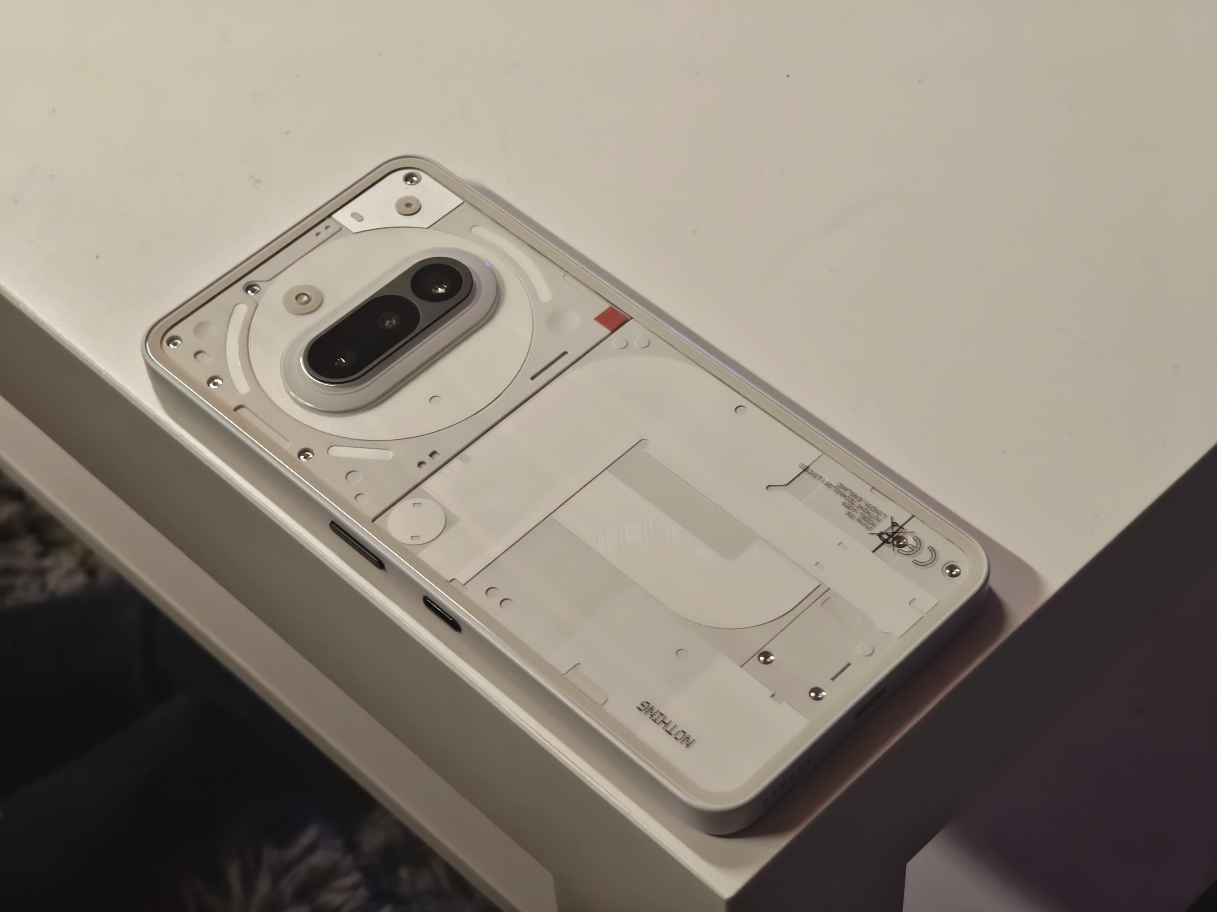 Auf der Rückseite ist eine Art Knopf, das ist aber eher sowas wie beispielsweise beim iPhone 8. Also lediglich ein Touch-Sensibler Bereich, welcher durch Vibrationen Feedback gibt. Dieser ist zum Bedienen der Glyph-Matrix notwendig.
