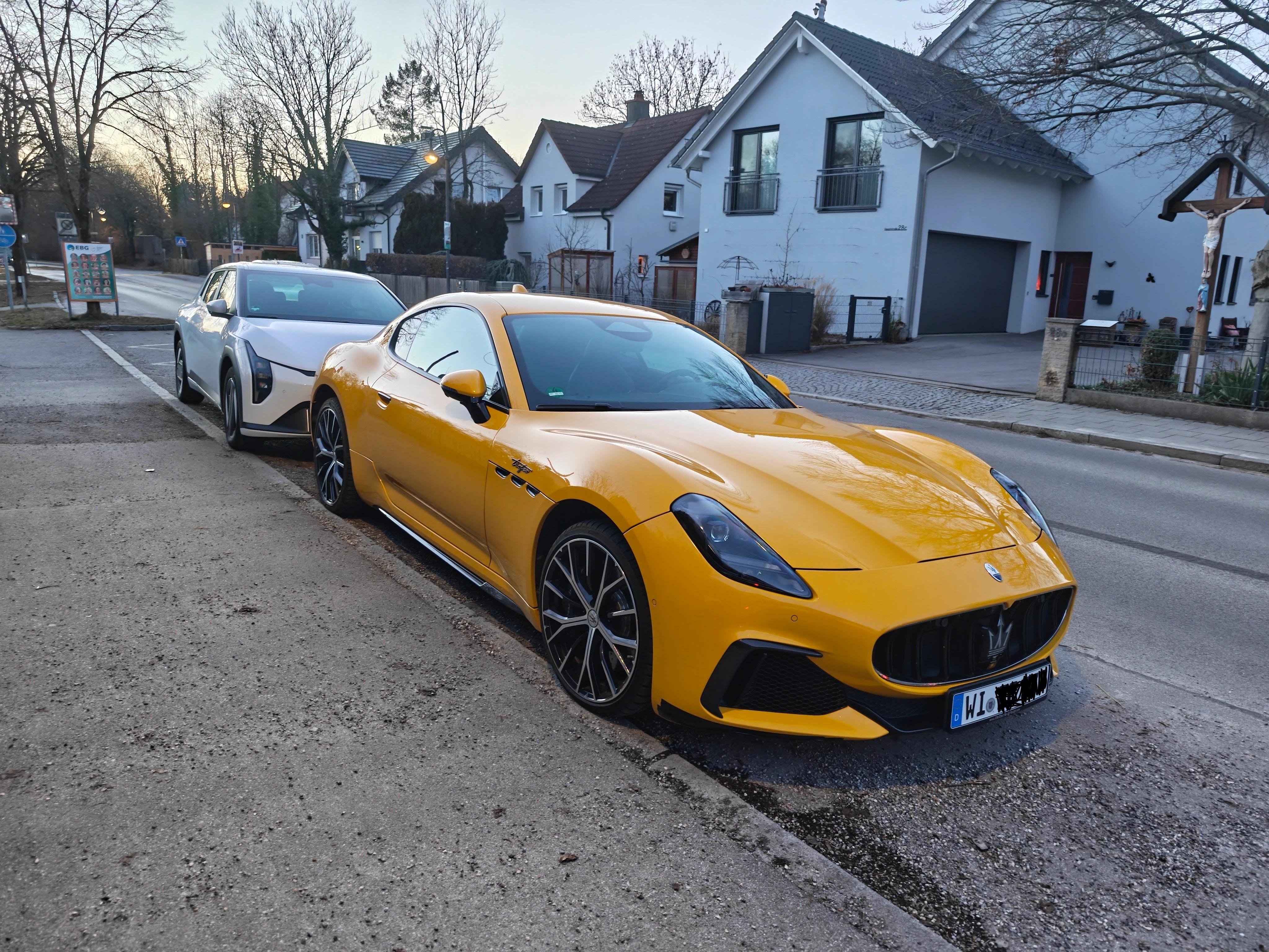 Gelber Sportwagen am Straßenrand