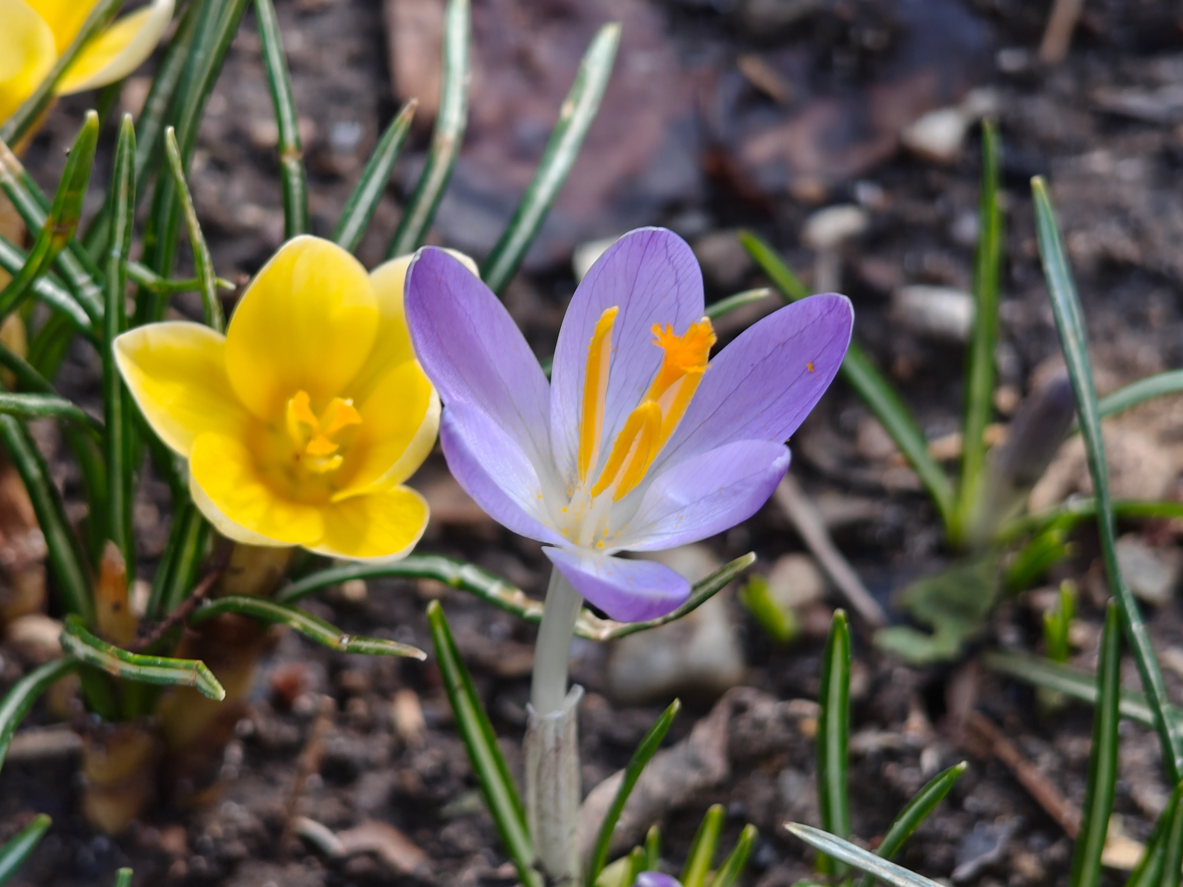 Nahaufnahem Krokos lila und gelb