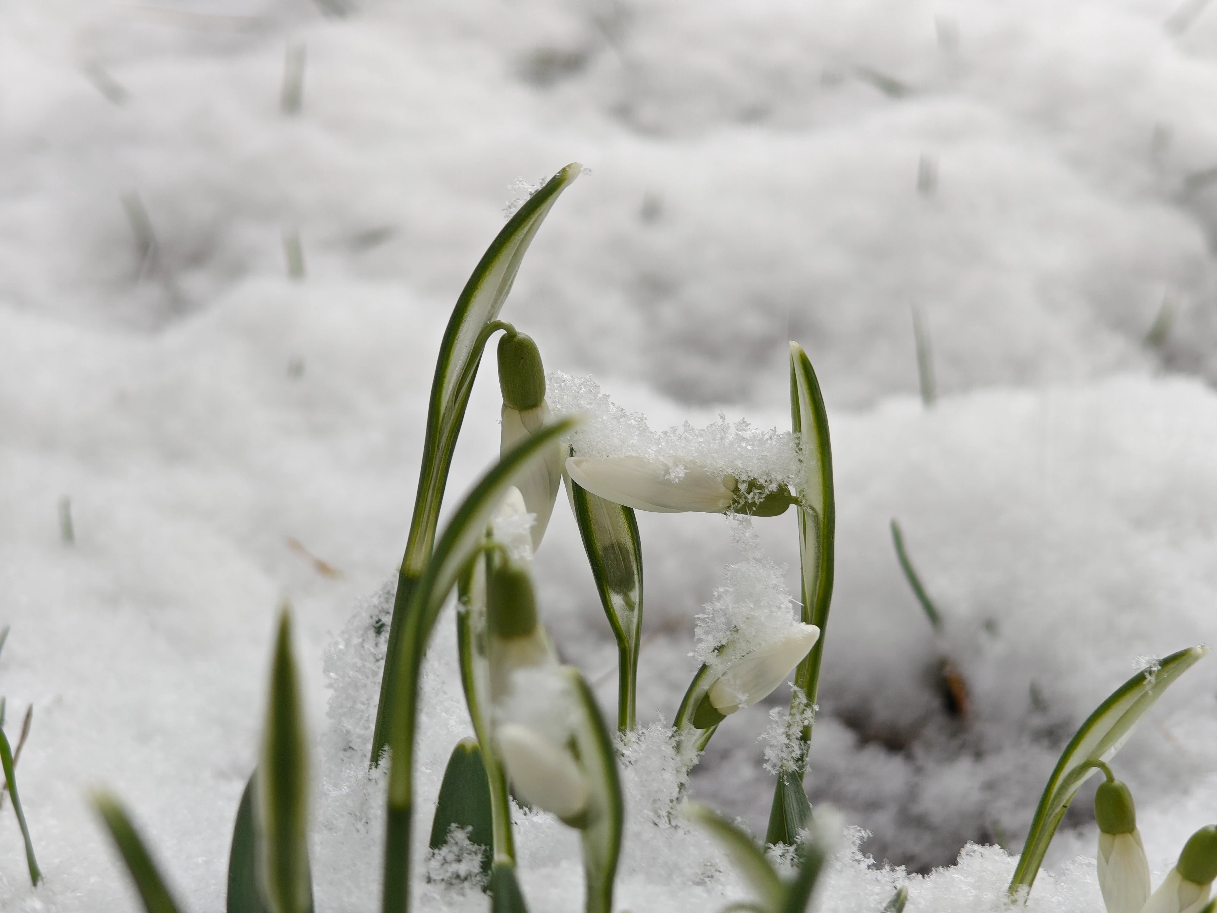 Nahaufnahme Schneeglöckchen im Schnee