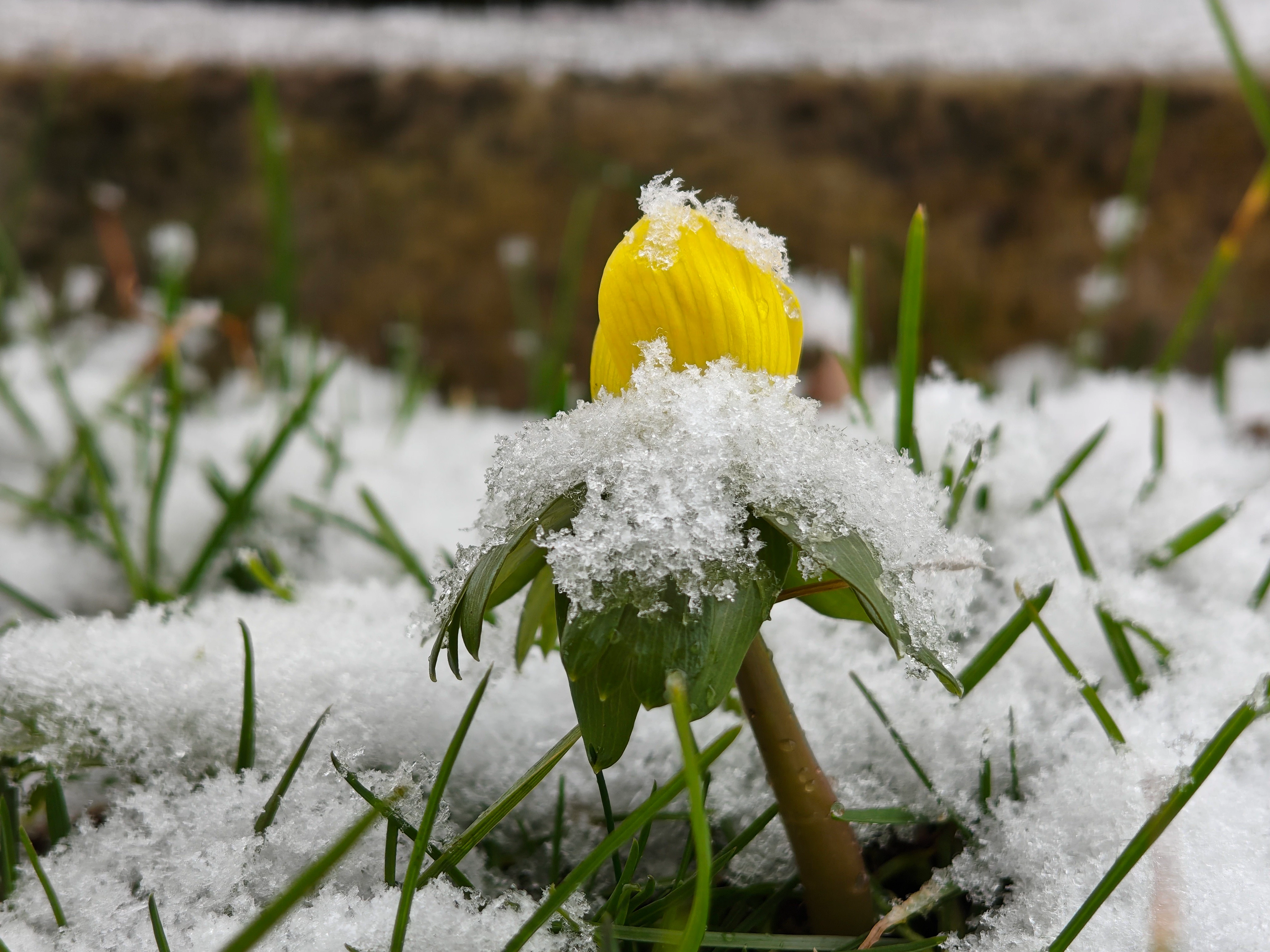Nahaufnahme Blume mit Schnee