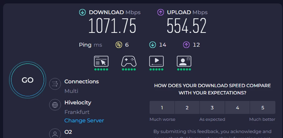 Die beworbenen 1000 Mbit/s im Download werden dauerhaft erreicht. Der durchschnittliche Ping liegt bei 6 ms. Ich habe auf meinen Homeserver das ganze 24/7 überwacht 😉Einbrüche oder Schwankungen zu Stoßzeiten konnte ich nicht feststellen.