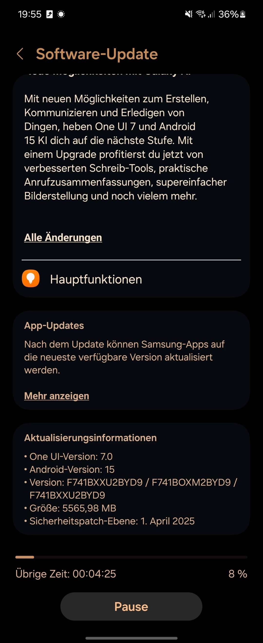 Update auf Android 15 und One UI 7.0