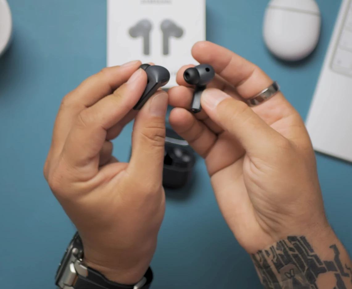 Das finde ich persönlich genial! Denn hier muss ich nicht direkt auf den Kopfhörer "draufhauen" oder klopfen, so wie es beispielsweise bei den Google Pixel Buds Pro 2 der Fall ist. Bei diesen Modellen muss man für einen Track-Wechsel zweimal klopfen, was gleich zwei Nachteile mit sich bringt:
