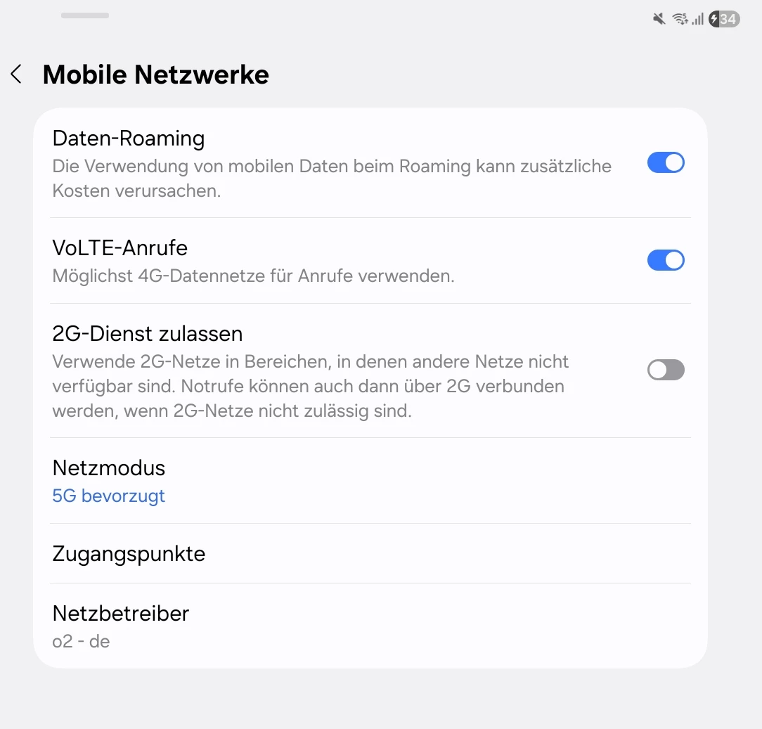 Einstellungsmöglichkeiten - Mobilfunk auf dem Samsung Galaxy Tab A11+ 5G