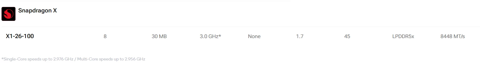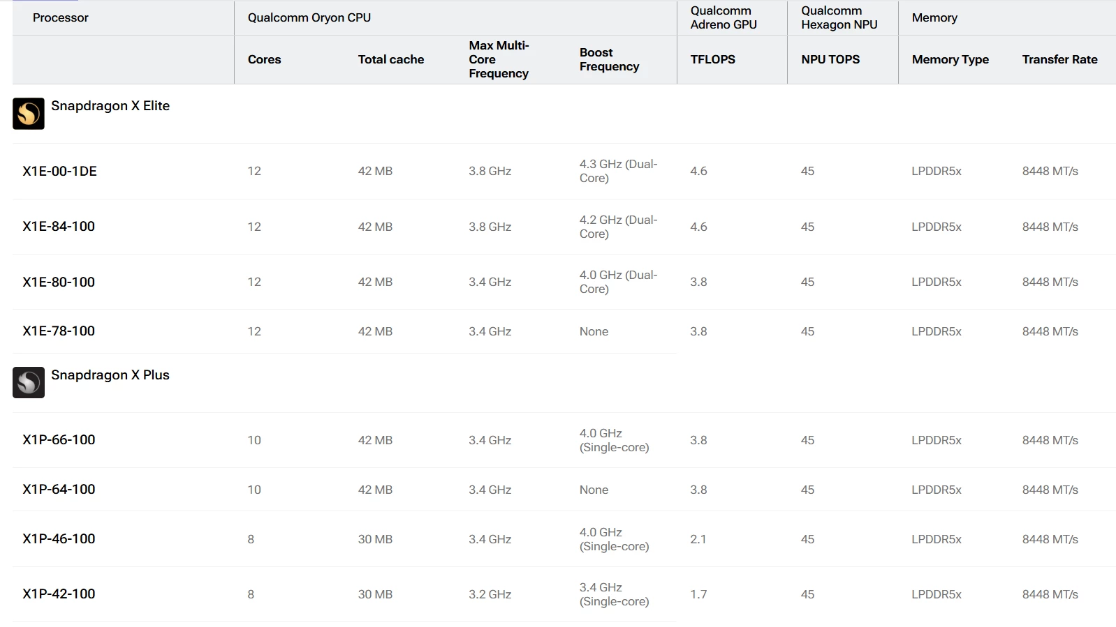 Snapdragon X Elite/Plus Varianten: Letzteres ist die erhaltene Konfiguration (X1P-42-100)