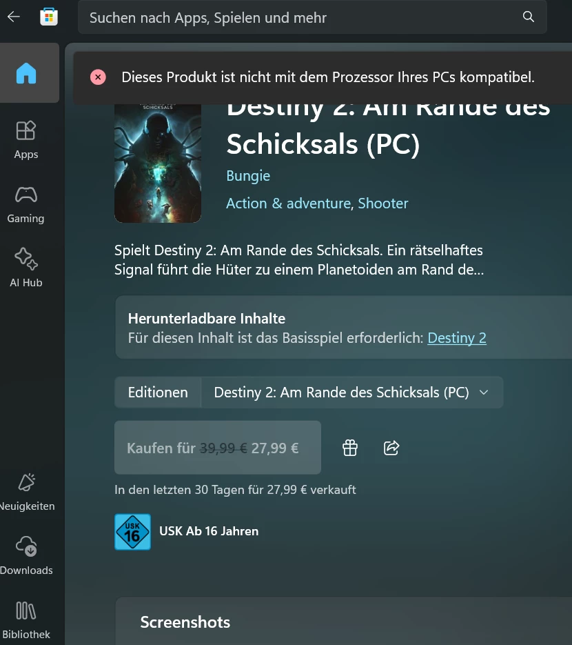 Leider wird eine ganze Reihe an Spielen und Software noch nicht auf ARM-Basis nativ (nur durch Emulation) bzw. gar nicht unterstützt. Letzteres hier unter anderem die Spiele Destiny 2 oder Shadow of the Tomb Raider.