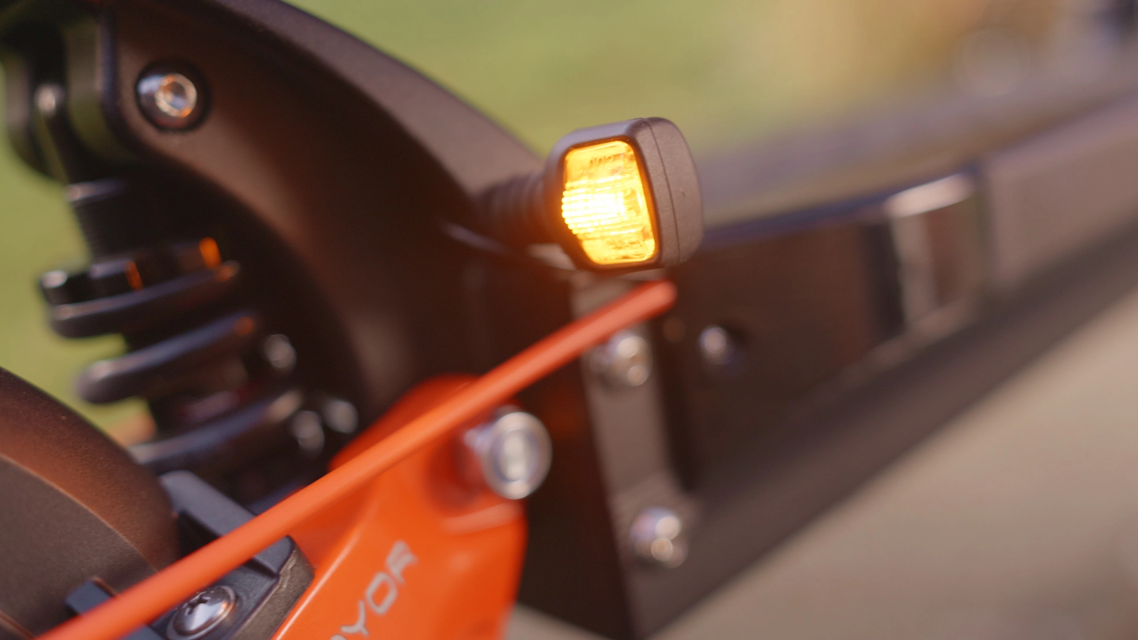 Was ich genial finde: Die Blinker sind sehr dezent und stehen nicht störend hervor. Sie sind absolut unauffällig in den Scooter integriert. Das gefällt mir optisch sehr gut. Und klar, in der Dunkelheit sind sie sehr gut zu sehen.