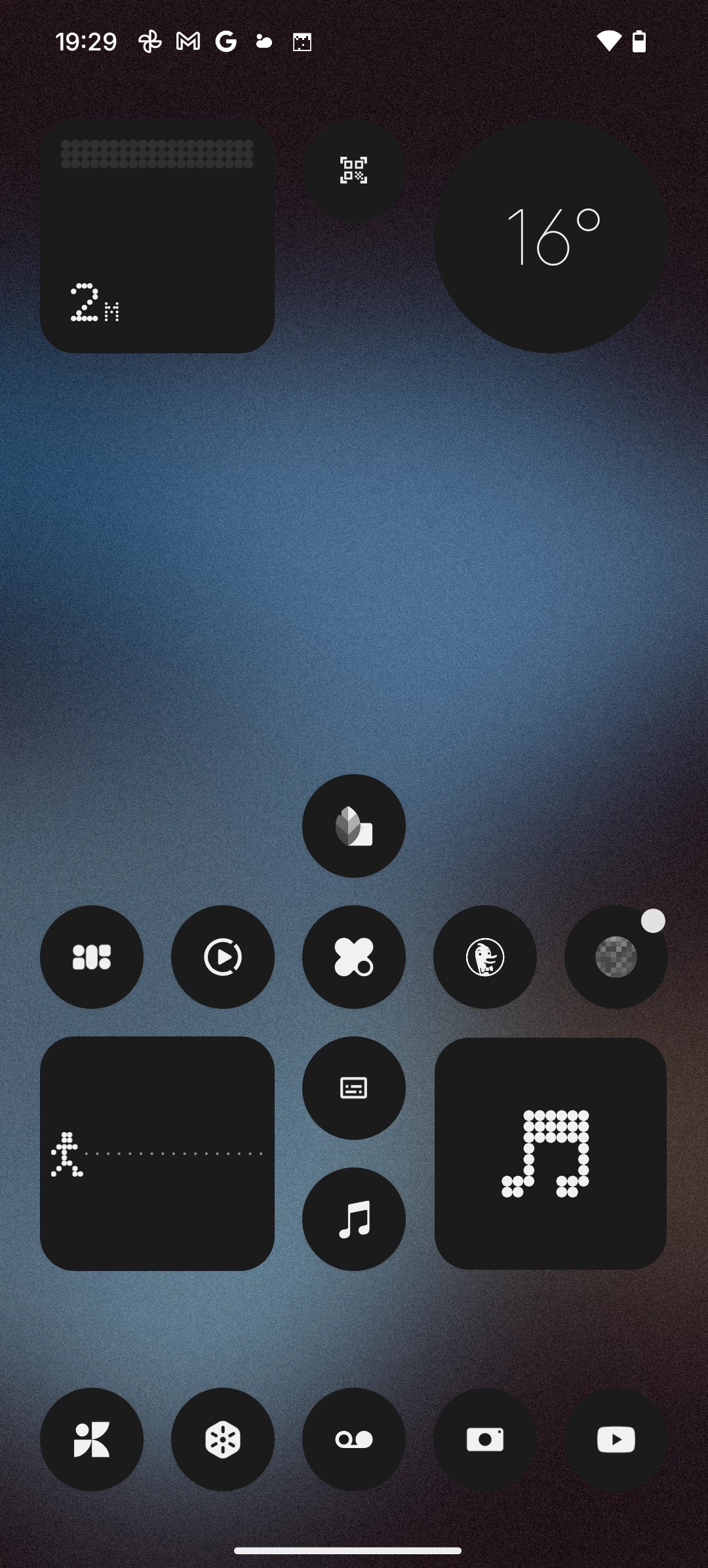 Kurts Homescreen auf dem Nothing Phone 3a Pro, minimalistisch scharz-weiße Icons vor einem Farbverlauf mit sehr viel Körnung