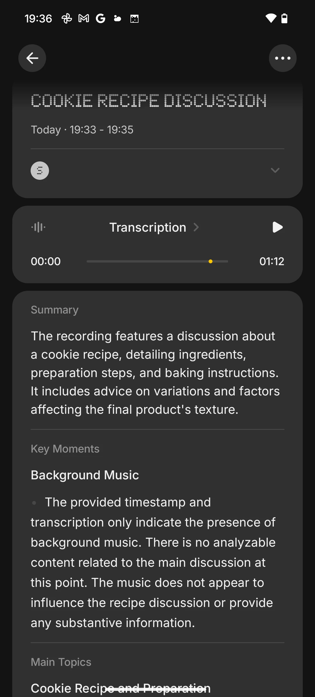 Ein Screenshot des Transkripts aus dem Essential Space, in welchem ein Rezept für Kekse beschrieben wurde​​​​​