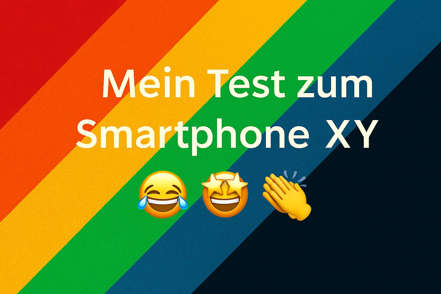 Ein KI-generiertes Titelbild in bunten Farben. Titel: “Mein Test zum Smartphone XY”. KI: CoPilot